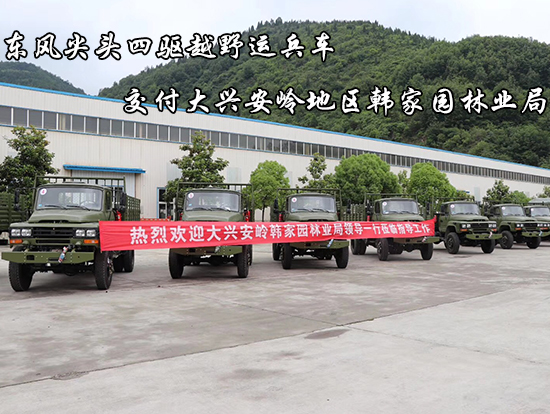 東風(fēng)四驅(qū)越野森林消防運兵車12輛交付黑龍江省大興安嶺地區(qū)韓家園林業(yè)局,2018年5月中旬林業(yè)局領(lǐng)導(dǎo)到我公司驗收招標(biāo)采購的東風(fēng)牌EQ1093F型四驅(qū)越野卡車12輛用于森林滅火工作的保障車輛,采購車輛交接儀式圖片如下: