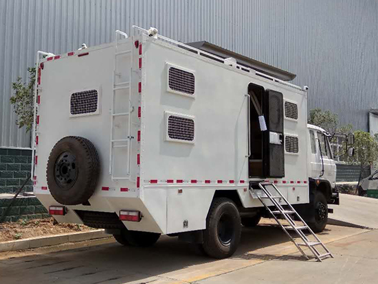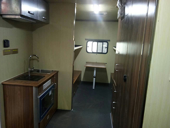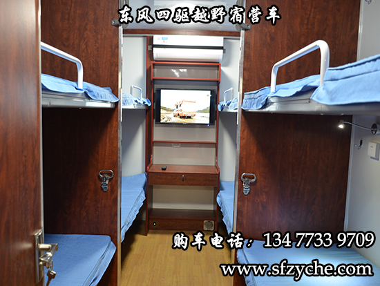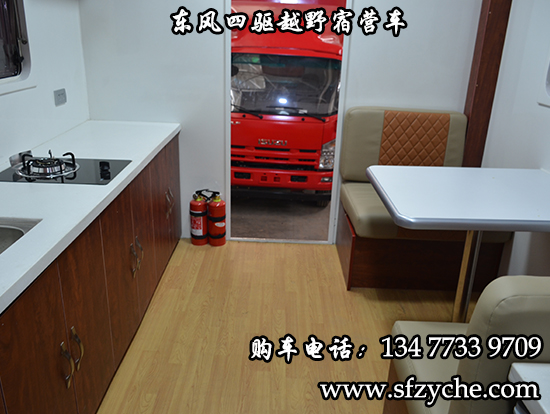 東風(fēng)大型四驅(qū)越野房車滿足更多路況復(fù)雜環(huán)境使用,廂體內(nèi)裝有豪華折疊床、液晶電視、儲物柜、應(yīng)急燈、頂燈、頂置空調(diào)、床墊、被褥、燃油加熱器、頂護(hù)欄、爬梯、隱藏抽拉梯、專用房車門、中空玻璃、戶外燈。由保溫廂體、空氣調(diào)節(jié)系統(tǒng)、宿營設(shè)施、影音系統(tǒng)、電氣系統(tǒng)、通風(fēng)換氣系統(tǒng)、洗漱和衛(wèi)生設(shè)施。整個(gè)廂體分為三個(gè)部分,住宿區(qū)、洗漱區(qū)、餐飲區(qū)。住宿區(qū)包括四個(gè)上下鋪,床頭燈,液晶電視,空調(diào)等。洗浴區(qū)包括臉臺,衛(wèi)生間,熱水器等。餐飲區(qū)包括無煙灶臺,可活動餐桌,洗菜盆等。也可以根據(jù)用戶的需要設(shè)計(jì),可增加會議室,辦公區(qū)等。東風(fēng)大型四驅(qū)越野房車內(nèi)飾圖片: