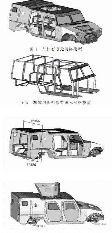 上圖是1代猛士裝甲車車身結構簡圖(由于長軸2代猛士仍然處于測試狀態(tài),引用1代猛士裝甲車結構進行比對說明),為了提升整車鋼性以及安全防護能力,上部分的車身焊接采用單獨全封閉結構(側圍、頂蓋、地板預先焊裝一體)。在A/B/C/D柱之間焊裝多條加強筋保證縱向結構強度。與美軍現(xiàn)役悍馬裝甲車(通過對基型車換裝裝甲板)不同的是,1代猛士裝甲車原廠狀態(tài)就采用可防護7.62毫米口徑穿甲彈在100米內全向攻擊、12.7毫米口徑機槍彈正面攻擊、3公斤TNT當量爆炸物地面攻擊、以及105毫米口徑榴彈破片50米內攻擊的均質裝甲板。