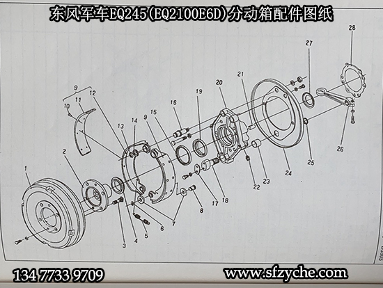 EQ245/EQ2100E6D/EQ2102東風六驅軍車分動箱配件易損件名稱:主動軸、高檔主動齒輪、高檔從動齒輪、低檔從動齒輪帶小齒、7608E軸承、中間軸、半圓鍵、中后橋驅動軸、高低檔換擋齒套、前橋主動嚙合套、前橋主動軸、分動箱大突緣叉、分動箱小突緣叉、分動箱油封、分動箱外殼加蓋總成、分動箱高低檔撥叉、高低檔撥叉滑塊、剎車鍋總成等