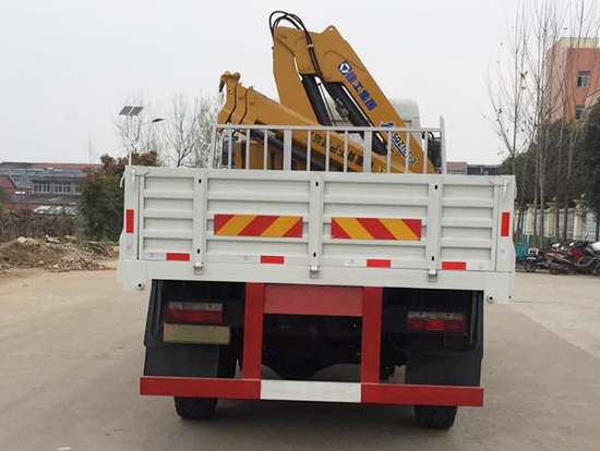 2. 采用徐工5噸折臂式隨車吊,SQZ105型徐工原廠吊機(jī),最大起重質(zhì)量5噸,三節(jié)臂,舉升高度11米,工作半徑8米,全液壓,全回轉(zhuǎn),車廂尺寸4.25米,遠(yuǎn)程油門控制,下操作。
