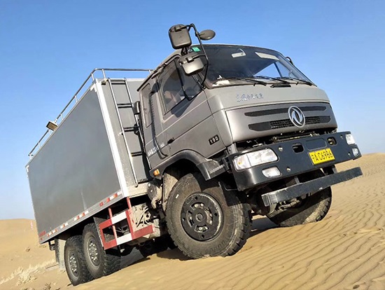 東風(fēng)六驅(qū)國(guó)五越野廂式車(chē)簡(jiǎn)介:采用東風(fēng)原廠(chǎng)六驅(qū)國(guó)五越野底盤(pán)EQ2220GD5DJ型,駕駛室為老款153,新款D913兩種可以選擇,康機(jī)190馬力帶增壓,機(jī)械式六檔變速箱,3.5噸軍檢分動(dòng)箱,4.5噸雙聯(lián)式軍用驅(qū)動(dòng)前橋,5噸軍用貫通式雙后橋,方向助力,離合助力,前橋介入高低檔均采用電控式,315/80R22.5越野輪胎,軸距3500+1250mm,ABS,隨車(chē)工具及備胎各一套。