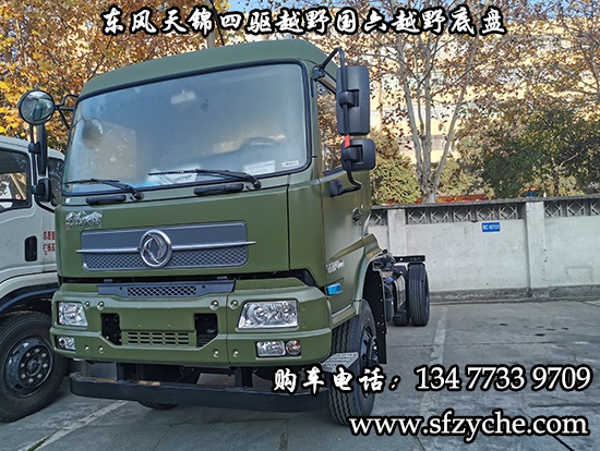 DFV2163GP6DJ型國六排放東風天錦四驅(qū)越野底盤,東風天錦D530一排半駕駛室,4×4驅(qū)動,康明斯B6.2NS6B210國六發(fā)動機210馬力,最大扭矩:850N.m/1100-1700rpm,排量6.2L、韶齒手動六檔變速箱,東風德納車橋,前驅(qū)動橋4.5噸,后橋10噸,10.00R20輪胎,軸距4500mm/4700mm,電動玻璃,方向助力,斷氣剎,ABS,大燈自動調(diào)節(jié),自動調(diào)整臂,選裝原廠空調(diào)。
